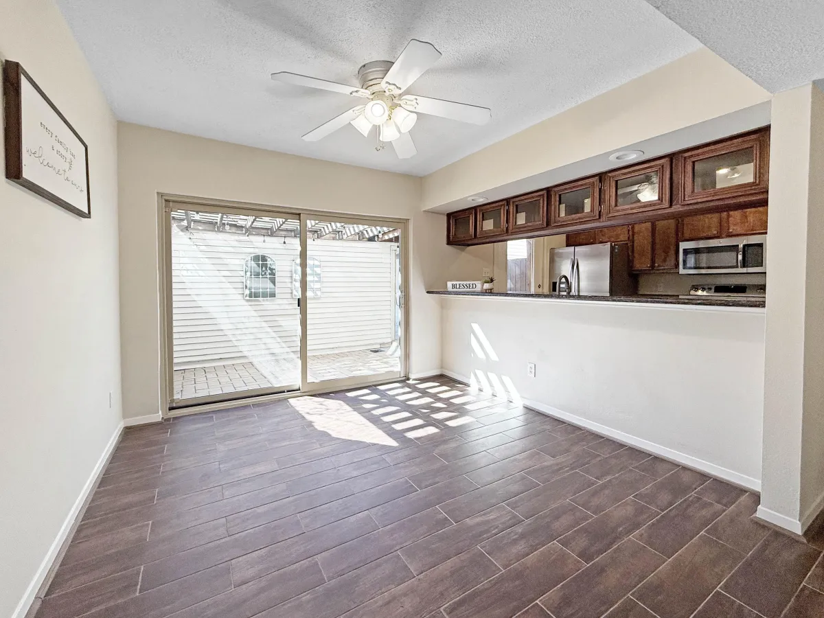 The kitchen offers granite countertops, updated cabinetry, and full appliances included. Enjoy a private patio perfect for entertaining or relaxing outdoors.