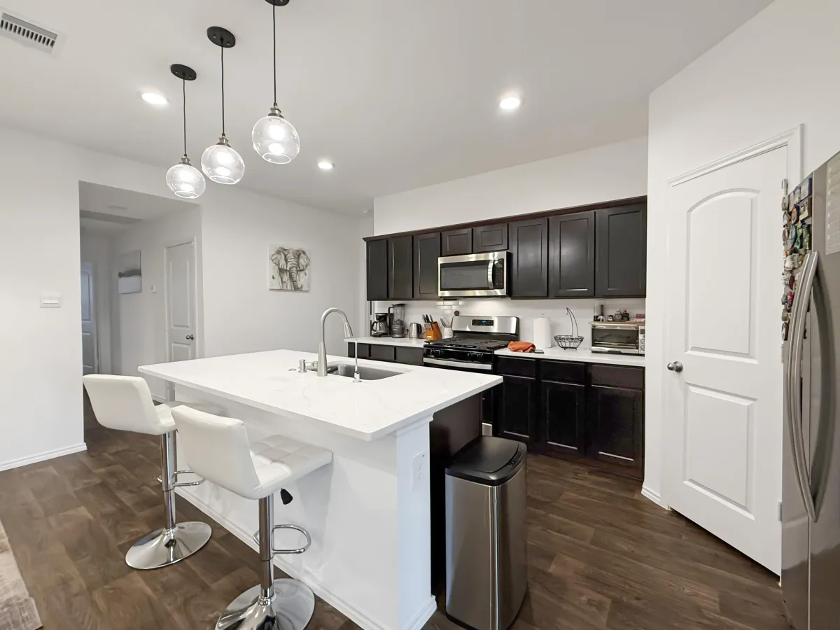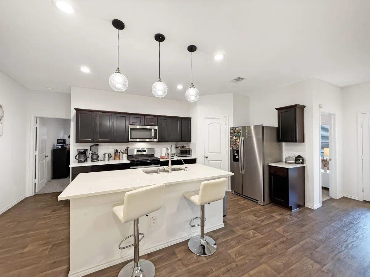 Step inside and enjoy an open-concept layout with luxury vinyl flooring throughout the main areas and elegant quartz countertops in both the kitchen and bathrooms. The kitchen features modern pendant lighting, a large island perfect for entertaining, and upgraded finishes that make this home stand out from others in the neighborhood.
