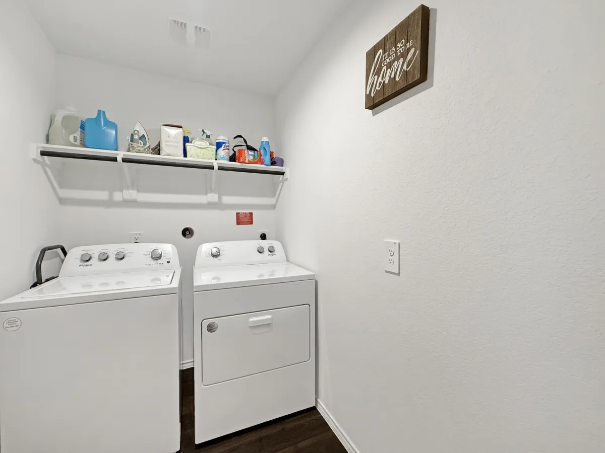 Appliances: Gas oven, gas range, microwave, dishwasher, disposal; electric dryer connection.
